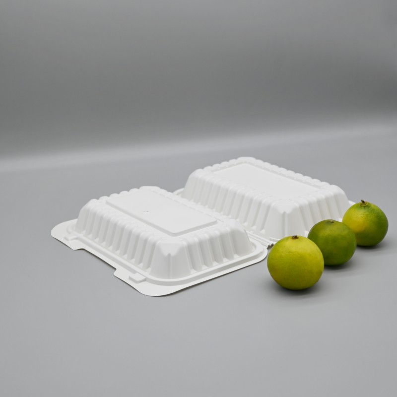 9*6'' cornstarch takeaway fast food container is mainly a starch raw material extracted from corn starch. It is an eco-friendly material that can be degraded naturally through microorganisms and enzymes in the natural environment.