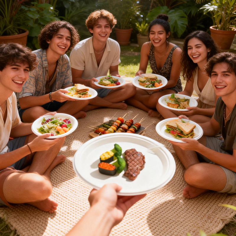 3.Natural material aesthetic: For events with eco-conscious themes or natural décor, bagasse plates align perfectly with the overall aesthetic. They blend beautifully with wooden tables, greenery, and outdoor settings in ways that synthetic-looking paper plates never quite achieve.