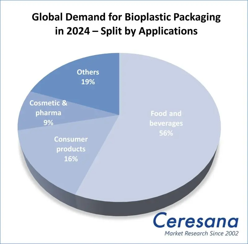 The report confirms that over 56% of bioplastic demand originates from food and beverage packaging. This directly validates the tremendous success and potential of biomaterials like PLA in scenarios such as staple foods, salads, beverages, and takeaway.