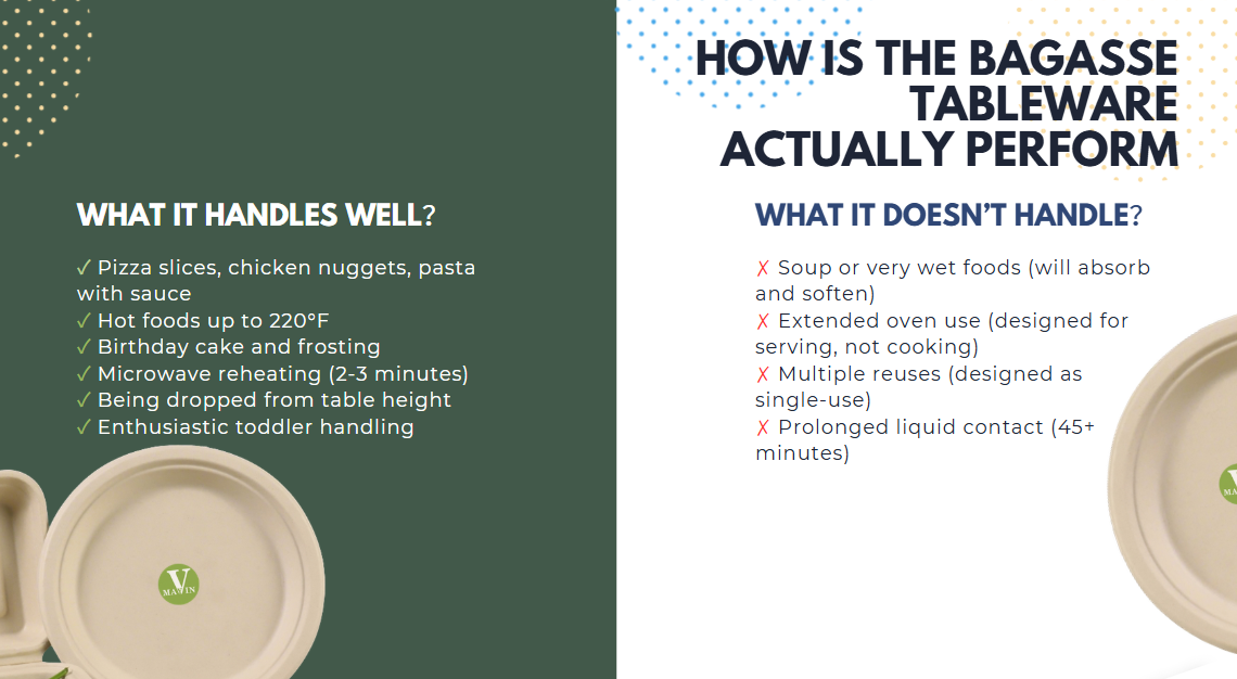 Beyond safety, bagasse tableware needs to actually work for messy family meals.