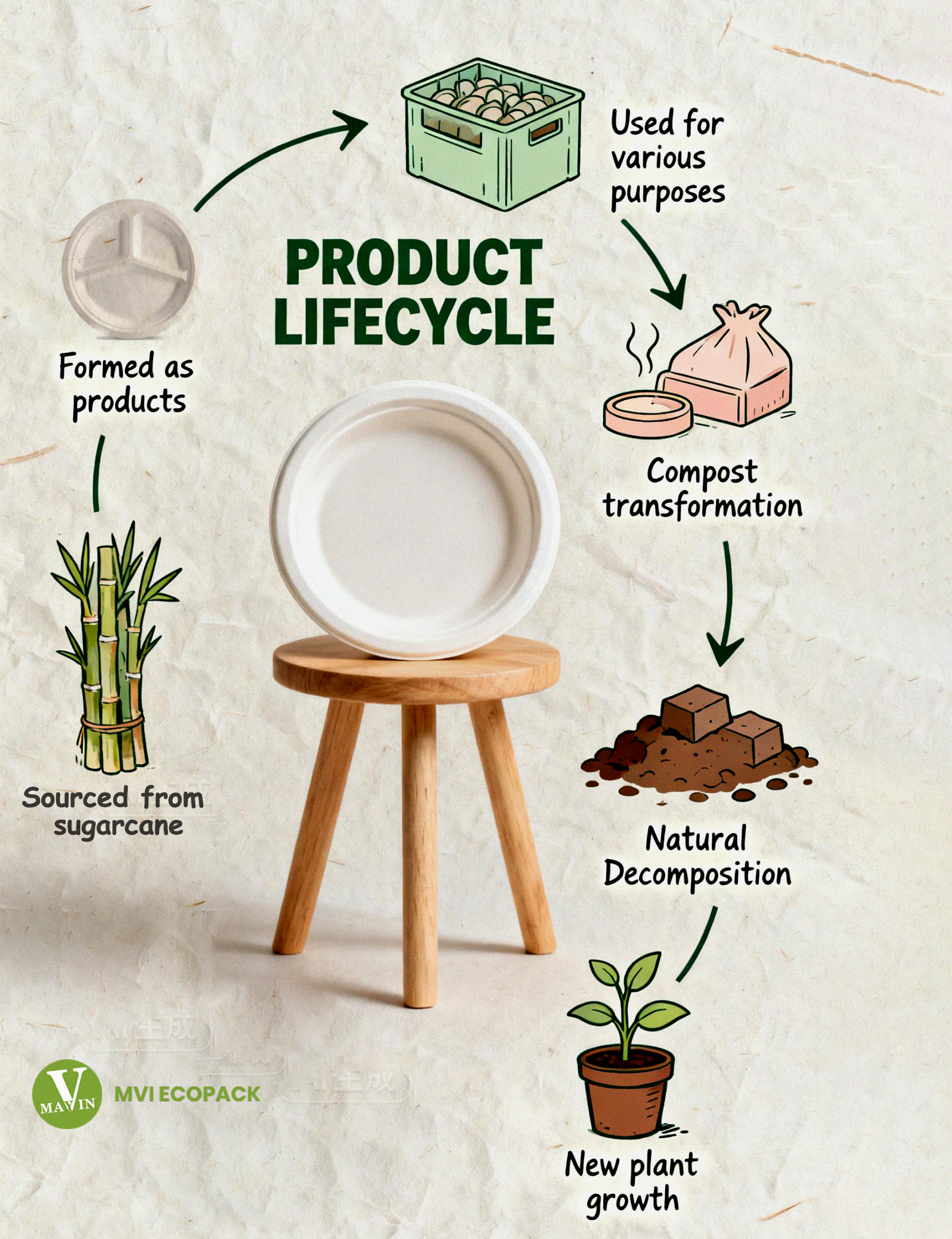 The leftover sugarcane fibers are collected, cleaned, pulped into a moldable material, then shaped under heat and pressure into various tableware forms. The result? Durable, plant-based products that can replace plastic and styrofoam disposables without the harmful chemicals.